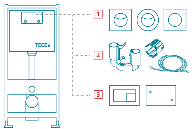 - Возможна установка совместно с любыми механическими панелями смыва TECE.
