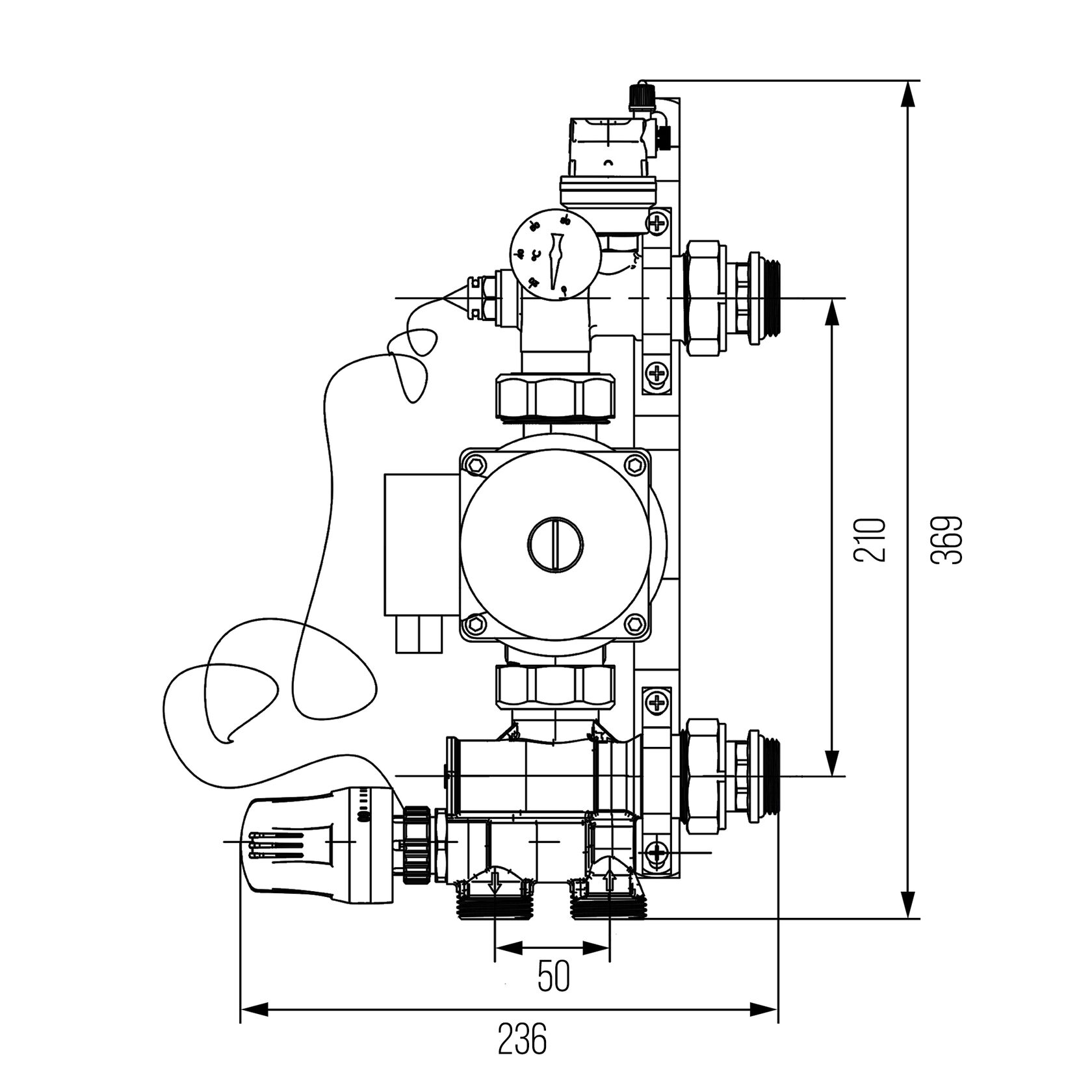 в системе радиаторного отопления отдельного контура поверхностного отопления с независимой циркуляцией и возможностью понижения температуры теплоносителя в нем. Узел поставляется без циркуляционного насоса. Вы можете сами подобрать и установить необходимый по параметрам насос с размером установки 130 мм.