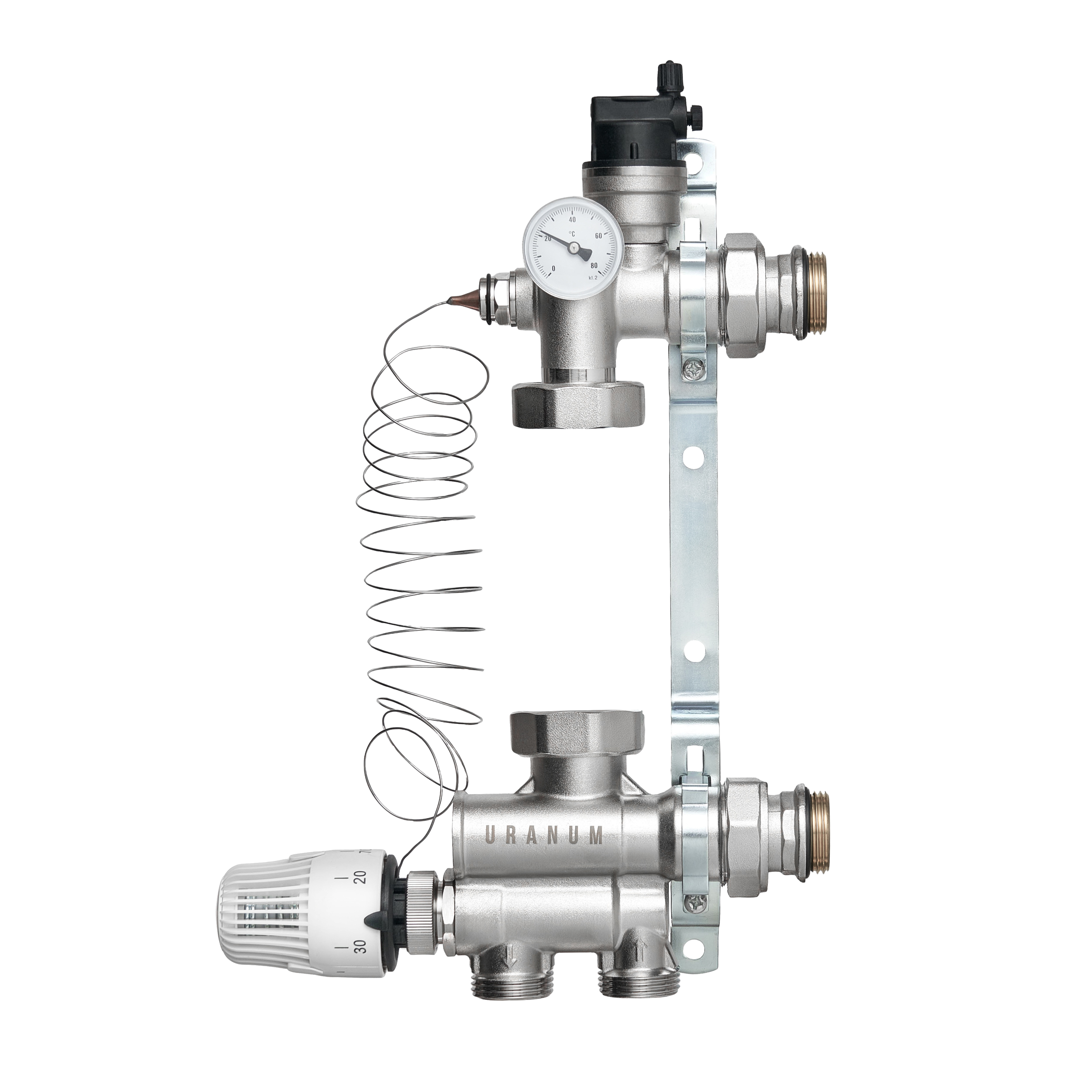 Насосно-смесительный узел Uranum предназначен для создания в системе радиаторного отопления отдельного контура поверхностного отопления с независимой циркуляцией и возможностью понижения температуры теплоносителя в нем.
